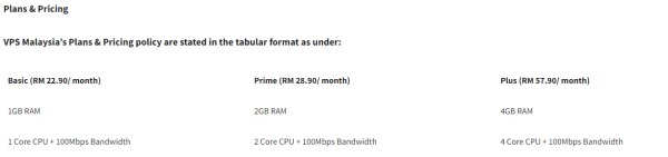 VPS Basic Plan: RM100/月 (2 CPU核心, 2GB RAM, 50GB SSD存储, 2TB流量)