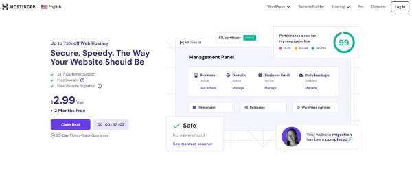 品牌介绍: Hostinger专注于为小型企业提供高性价比的托管服务,其VPS服务在欧洲享有良好的口碑。