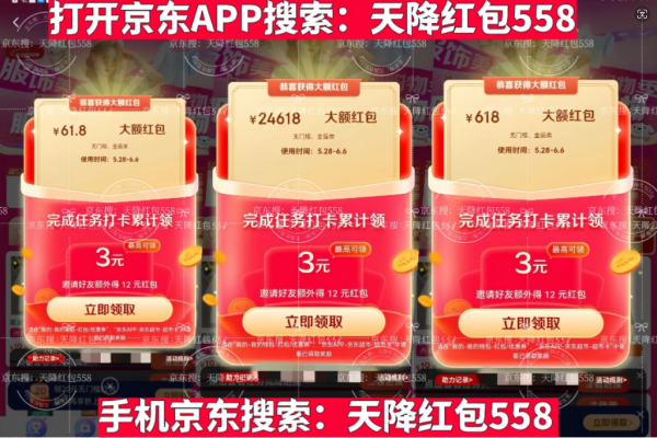 京东:搜索口令「天降红包558」,每天领取红包,最高奖金24618元!
