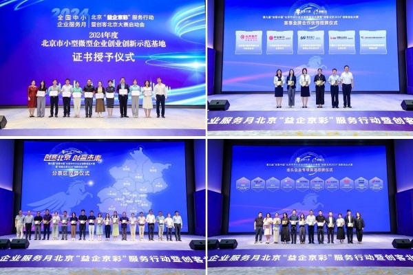 京东、字节跳动、国能龙源环保、用友作为企业代表分享中小企业服务成功案例。本次活动举办了龙头企业赛道、区级赛区、赛事合作伙伴授牌授牌仪式,还为2024年度示范平台、示范基地代表颁发证书。