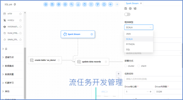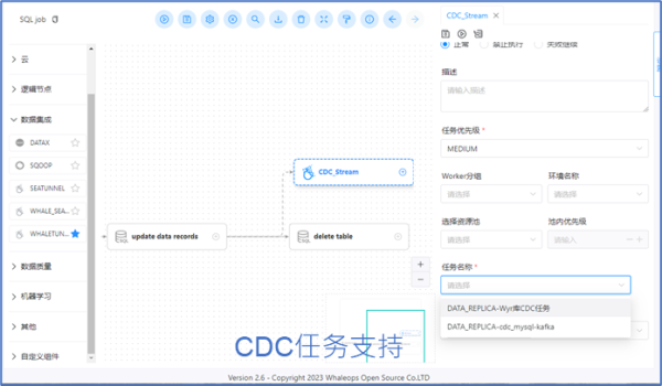 现在越来越多的用户开始使用实时数据仓库,从数据CDC抽取到数据实时加工及展示,从而支持风控、经济业务、银行在线分析等实时场景。在2.6版本中,我们还新增了对多种实时任务的全面支持,用户可以更便捷地进行编辑、管理、控制和删除操作,全面升级用户实时数据仓库开发能力。这些实时任务包括: