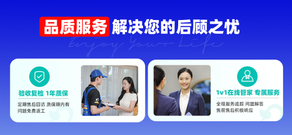 同时,轻喜在售后保障方面做得非常到位,一方面验收复检,1年质保。轻喜会进行定期售后回访,服务质保期内有问题可免费为用户返工;另一方面1v1在线管家,专属服务。轻喜全程服务追踪,问题解答售前售后积极响应。