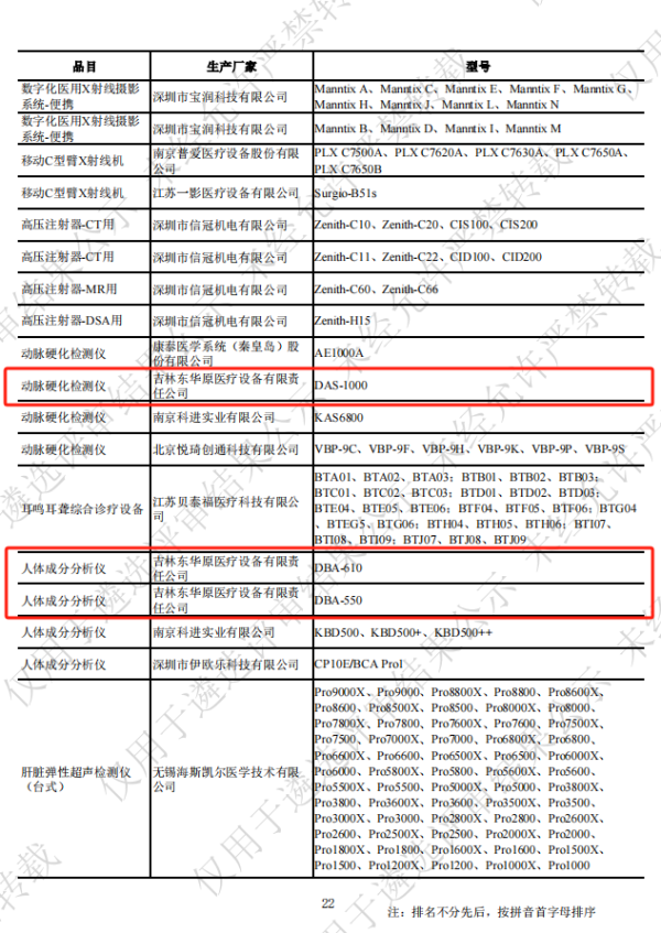 近日,第十批《优秀国产医疗设备产品目录》遴选结果发布,东华原医疗人体成分分析仪DBA-610、DBA-550,动脉硬化检测仪DAS-1000成功入选。