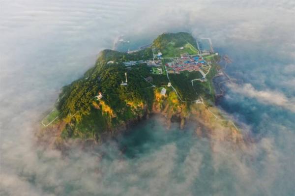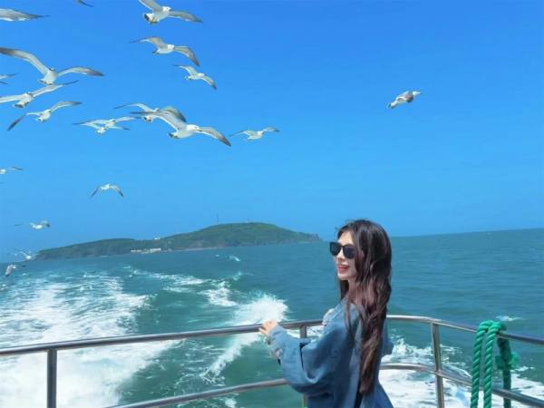 乘坐游船,一路与海鸥相随,来到鸡鸣岛上。仿佛屏障般的一片绿树,在上岛的一瞬间就展现在眼前,自然纯净的景色,海水与蓝天交相辉映,海面波光粼粼,站在码头上迎着凉爽的秋风,听着海浪拍打礁石的声音,就在这一方天地里拥抱放空的自己。