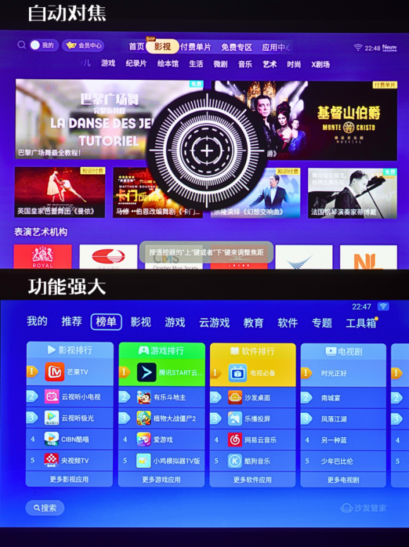 大眼橙X7D Ultra投影仪内置先进的智能系统,支持WiFi 6高速网络连接、蓝牙5.2无线连接,同时,配备遥控语音控制以及手机遥控小程序,可以实现语音点播内容以及手机遥控投影仪。此外,支持满配的画面自适应功能,实现毫秒级无感自动对焦、无感梯形校正功能、智能避障、自动入幕和智能防射眼,能够快速自动调整画面,确保画面始终清晰、方正,使用起来非常便捷、轻松。