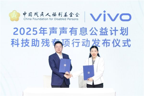 为积极响应《“十四五”残疾人保障和发展规划》科技助残的相关号召,助力以科技创新驱动残疾人事业现代化转型,在5月14日第三十五次全国助残日到来之际,vivo联合中国残疾人福利基金会举办了“声声有息公益计划-科技助残专项行动”发布会。会上,vivo宣布于2025-2030年间投入3000万元专项资金,持续探索技术赋能残疾人无障碍生活的创新路径,打造科技助残长效行动行业标杆,携手一线助残公益机构,帮助科技普惠从实验室成果落地到场景化应用,跨越科技助残的“最后一公里”。