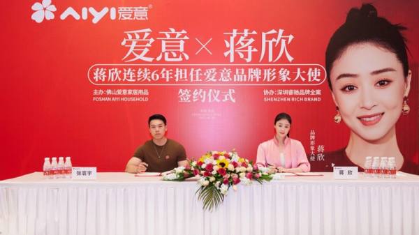 签约仪式上,爱意家居代表爱意集团新媒体运营总监张寰宇先生与蒋欣女士正式签署协议,并宣布:蒋欣女士将继续以品牌形象大使身份,引领爱意国民家居品牌新征程。