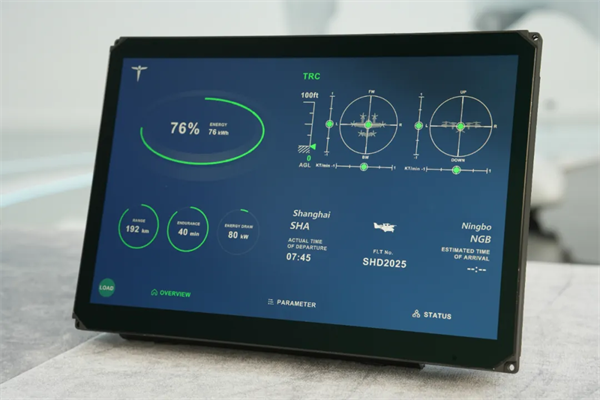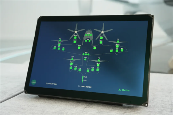 航电系统,是保障飞行安全的"神经中枢",更是衡量飞行器智能化水平的关键要素,本次交付的显示器是E20 eVTOL航电系统中的核心组件。该显示器系统采用触控式液晶屏,取代传统机械仪表,实现飞行信息的集中可视与直观操作的人机交互。其中,主飞行显示器( PFD )与多功能显示器( MFD )协同运行,搭载高性能数据处理平台与多点电容触控技术,具备高清图形显示与快速响应能力。系统采用双冗余架构设计,任何一台设备发生故障时,另一台可无缝切换并接管全部信息显示,确保飞行数据的持续可用,为飞行安全提供有力保障。