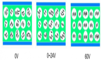 “墨影瞬光”采用PDLC物理调光原理,其核心是液晶分子的物理取向变化,能耗逻辑精准可控,关态(雾化隐私模式)无需耗电,开态(透明模式)持续低耗。具体来说,膜片内部均匀分布着大量液晶分子,不通电时,这些分子呈随机散乱排列,散射光线形成雾化隐私态,此状态下完全无需耗电;当施加电压时,液晶分子沿电场方向整齐取向,允许光线直射形成透明开态,此状态需维持8W/㎡的低功耗。