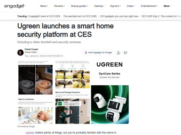 围绕家庭场景,中国科技品牌绿联(UGREEN)在 CES 2026 上首次系统性展示了 SynCare 智能家庭安防生态。
