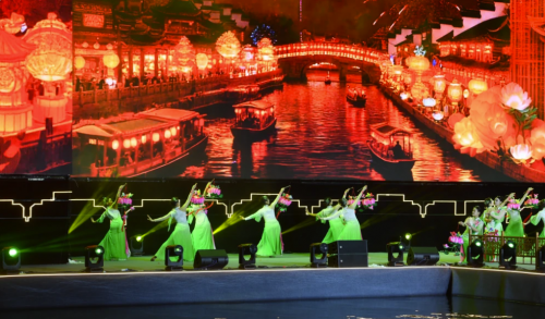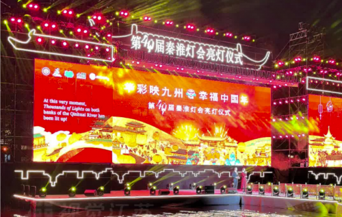 19时30分,亮灯仪式在气势磅礴的开场灯光秀中正式拉开帷幕。全息与情景演出《秦淮流韵》重现了千年风雅,演出以非遗传承人、诗人、状元、文人为代表,展现一代又一代的秦淮人在历史画卷中的文人风骨、家国情怀、风雅传承,传递秦淮灯会所寄托的美好愿景、喜庆祥和、万家团圆、浓浓年味。