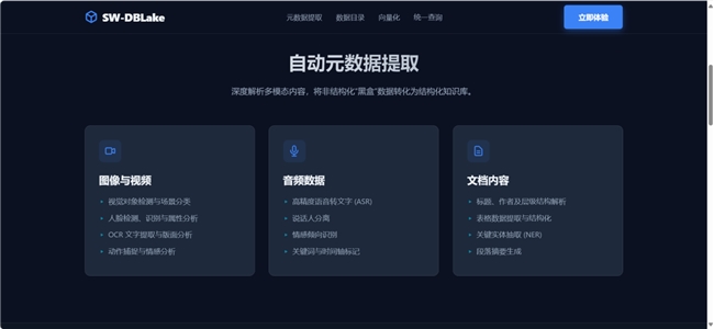 面对这一行业核心痛点,三维天地以下一代数据架构为蓝图,正式发布颠覆性的多模态数据湖产品:SW-DBLake。该产品旨在为企业构建统一、高效、AI原生的多模态数据管理基座,使企业从繁琐的数据治理工作中解脱出来,更专注于智能应用本身的价值创造。