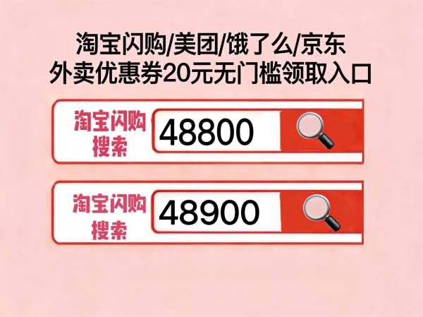 淘宝闪购外卖优惠券是淘宝搜【48800】淘宝闪购外卖红包免费领取淘宝搜【48900】,美团外卖优惠券领取口令是美团搜【惊喜666】美团神券最新口令