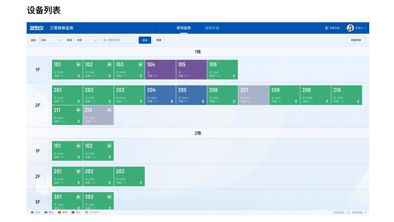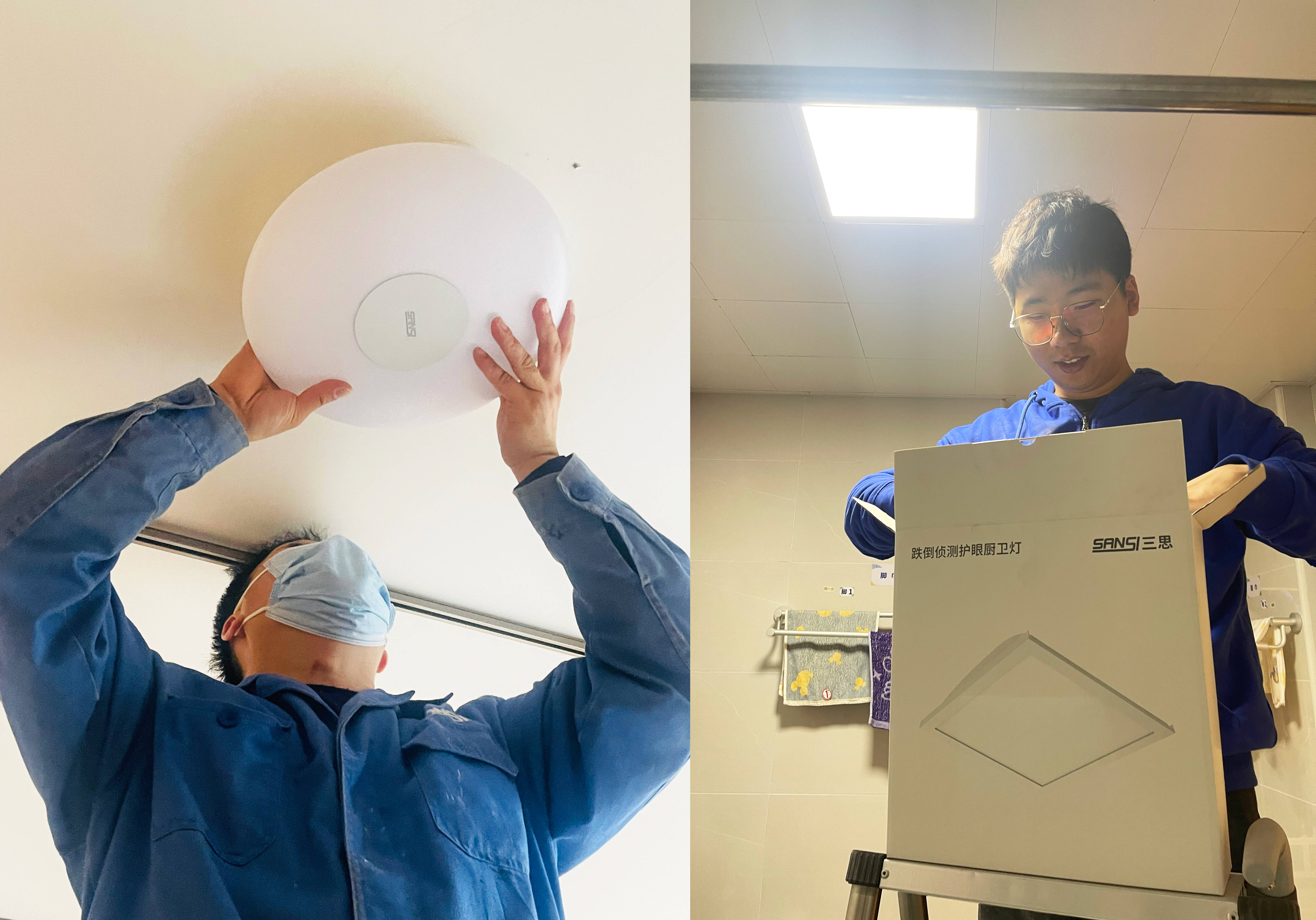 针对不同住户人群以及复杂的房间布局,三思提供了基于适老化“灯联网”的系统化部署方案。系统巧妙地将多维智能感知模组植入日常照明灯具中,通过复用现有供电与空间资源,长者无需佩戴额外的监控设备。在卧室及易发生意外的卫生间,这种隐形守护有效缓解了长者的心理负担与佩戴不便,实现了更高质量的照护体验。