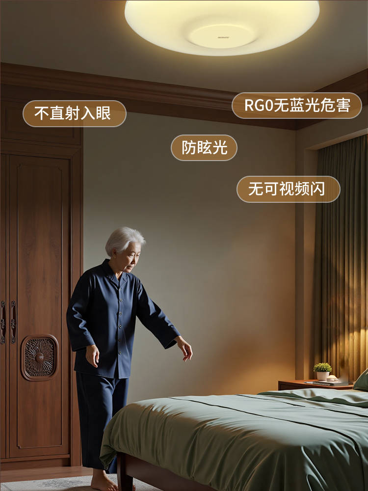 在追求守护科技的同时,三思不忘照明本心。所有跌倒侦测吸顶灯均采用了三思具有自主专利的反射式光学系统设计与陶瓷散热技术,提供高品质、舒适的健康光环境。灯具搭载自研无频闪调光驱动,显色指数高达Ra95以上,且达到了RG0无蓝光危害等级。