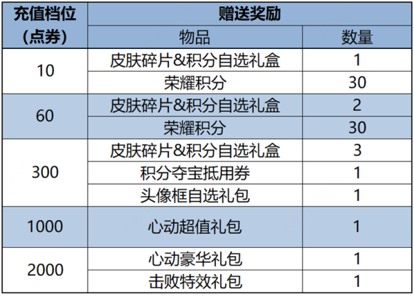 皮肤碎片&积分自选礼盒:打开礼包可任意选择以下奖励之一:荣耀积分*10或皮肤碎片*1
