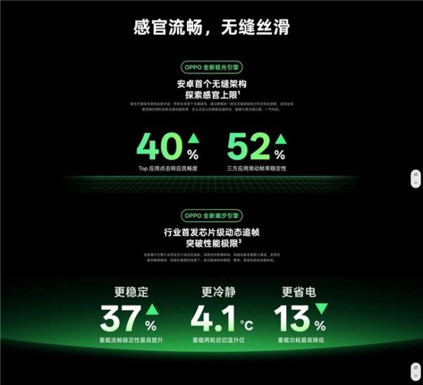 在流畅性核心两项技术:极光引擎与潮汐引擎,均迎来升级,全新极光引擎大幅优化应用响应与滑动跟手感;而全新潮汐引擎则确保了即使在重载任务下,流畅度依旧稳定如初,重载流畅稳定性提升37%。