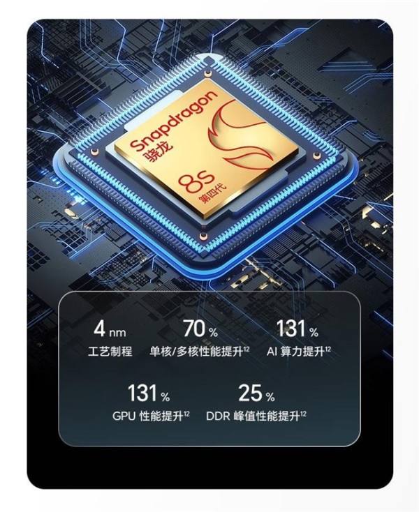 AI榜单第二名荣耀500,它搭载的骁龙8s Gen4在AI性能上同样不容小觑,相较前代8s Gen3,官方数据有44%提升幅度,最终荣耀500的AI分数为203440分。